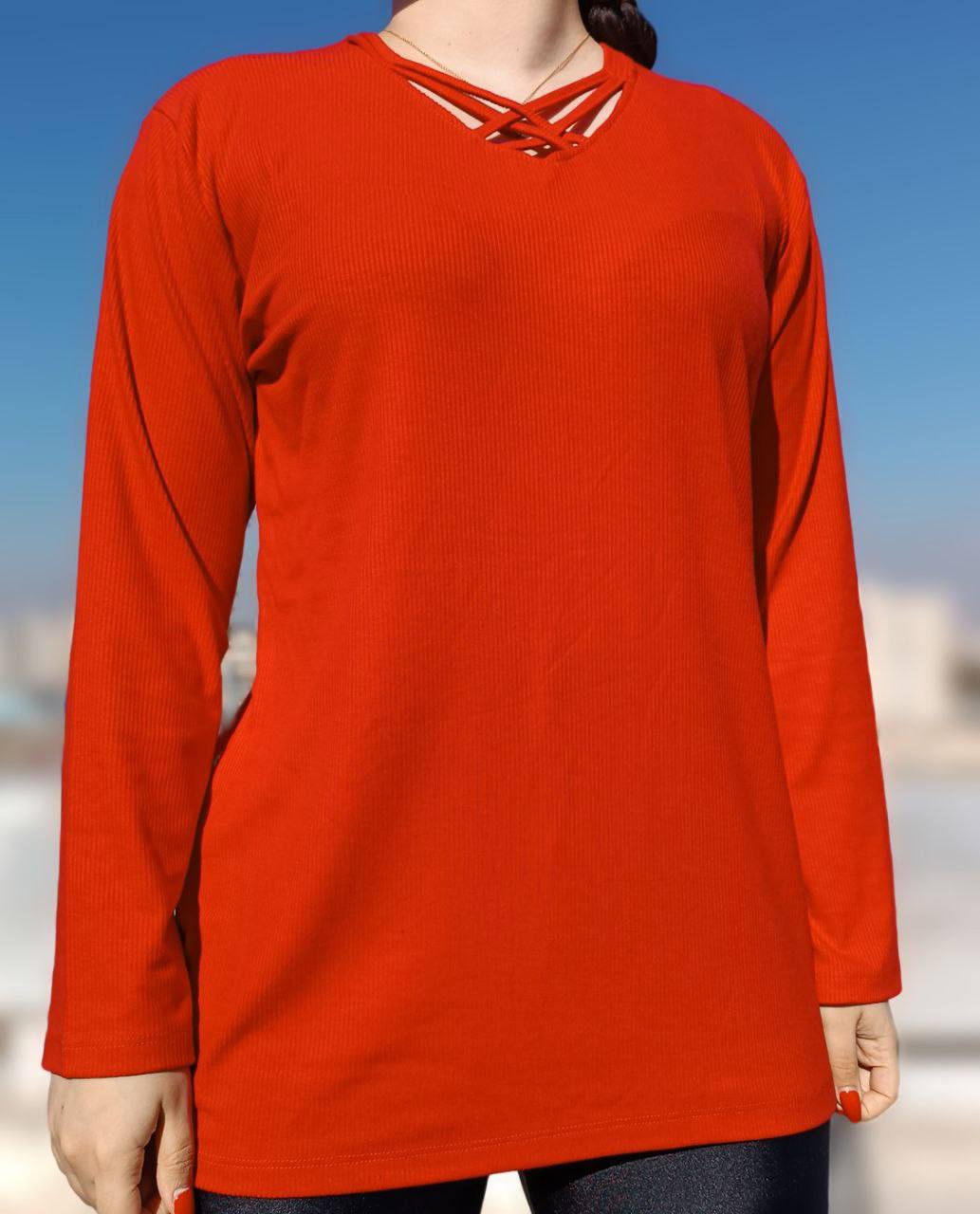 بلوز آستین بلند یقه پنجره ضربدری (پک 5 عددی)