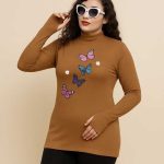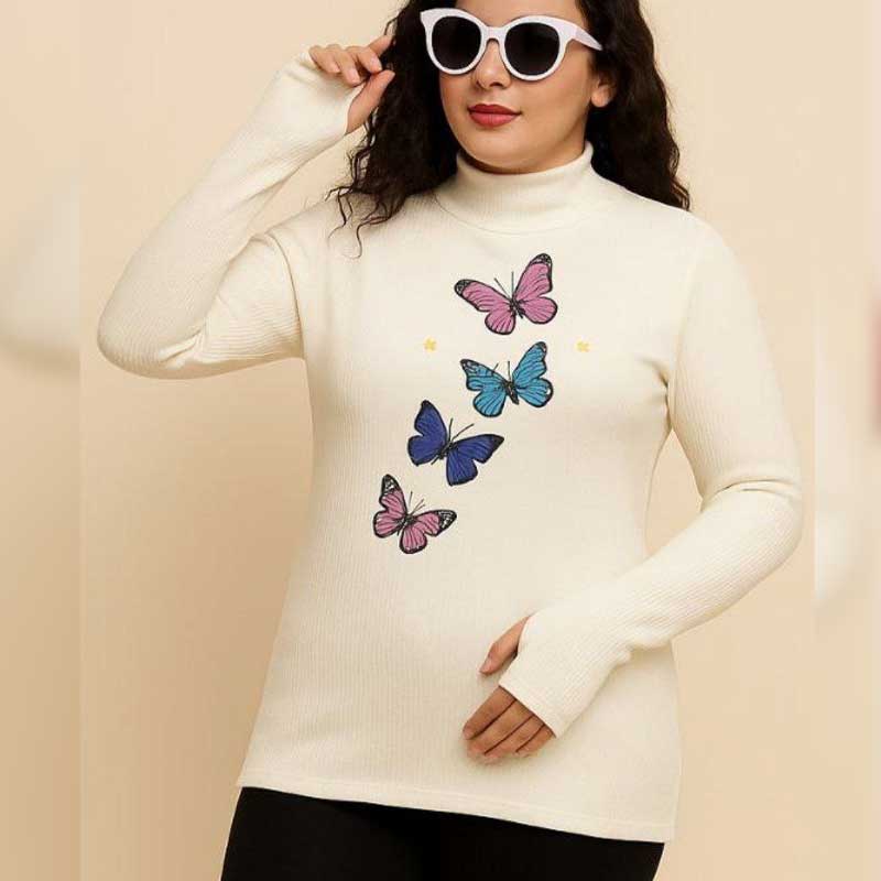 بلوز فینگر چاپ پروانه ای یقه اسکی ( پک 6 عددی)