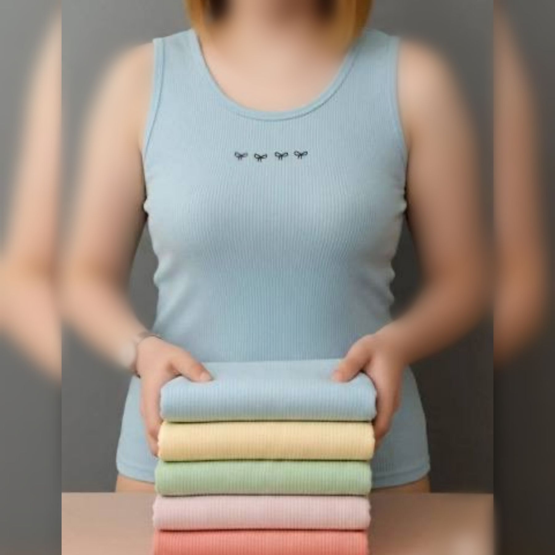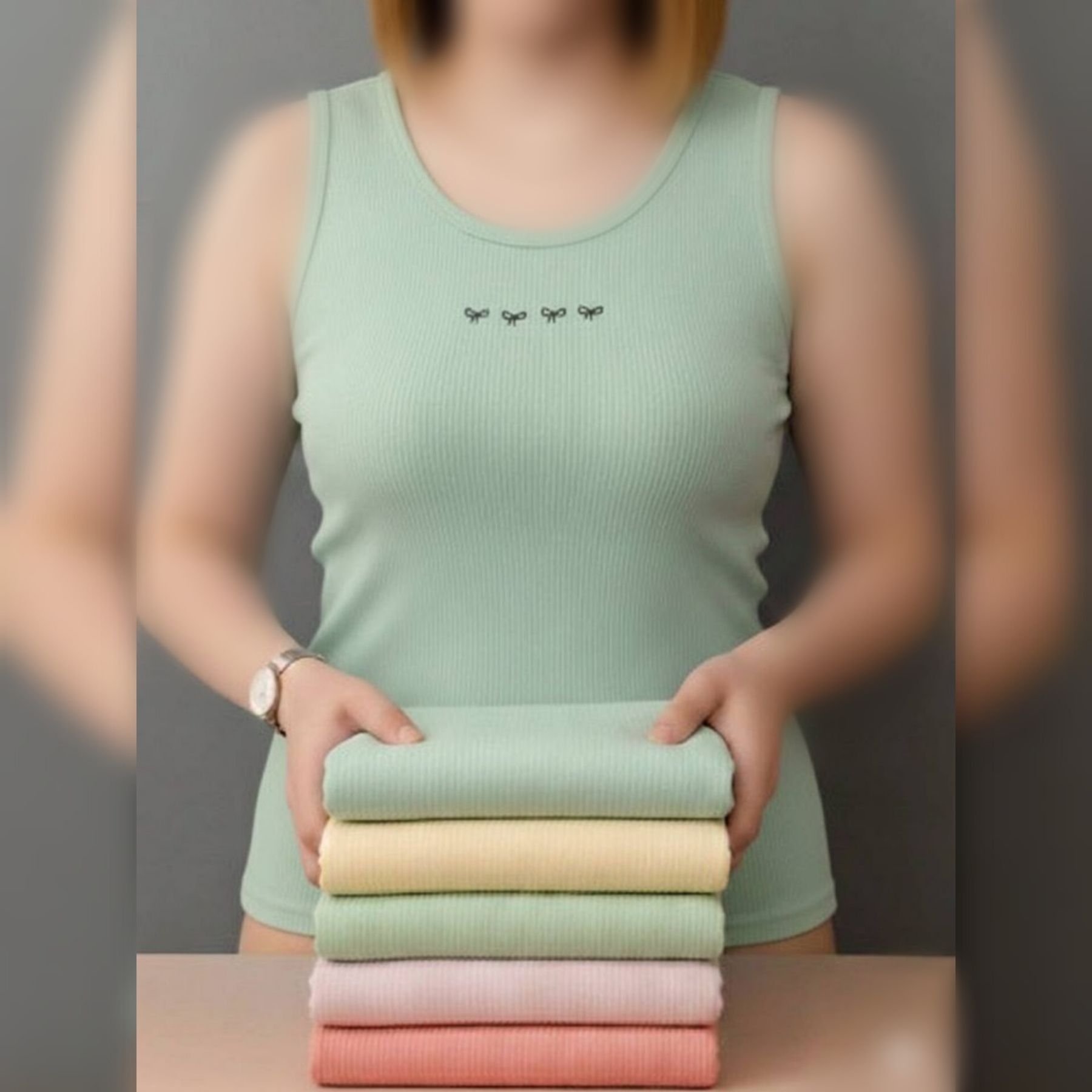 تاپ زنانه بیسیک چاپ پاپیون عمده (پک 6 عددی)
