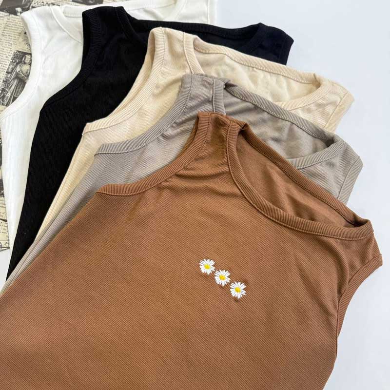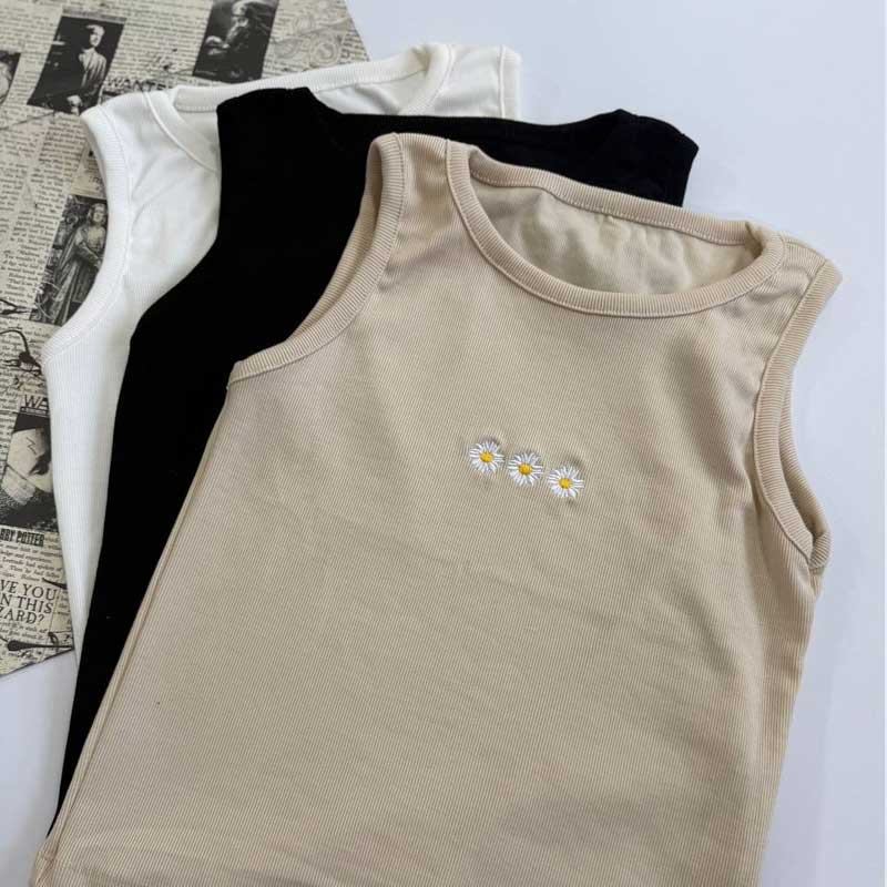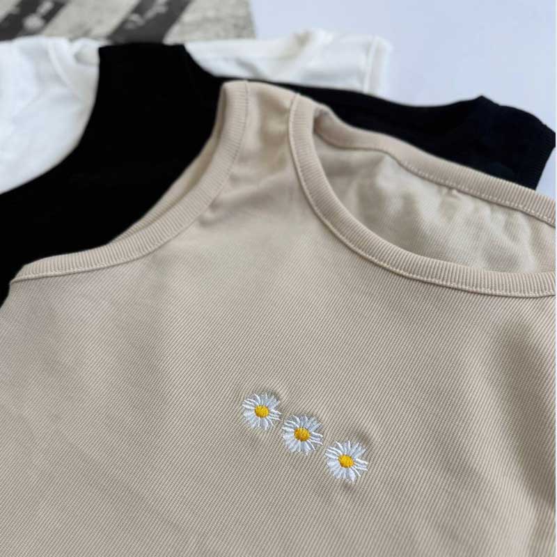 تاپ ۲ بندی گلدوزی ۳ گل بابونه (پک 5 عددی)