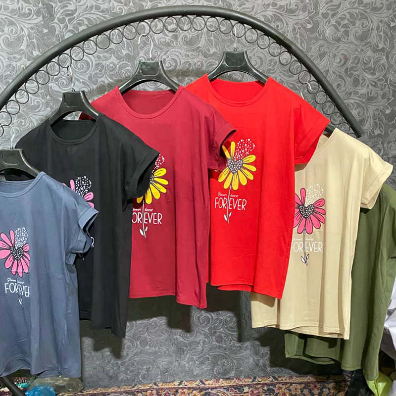 تیشرت قواره دار چاپ بابونه (پک 6 عددی)