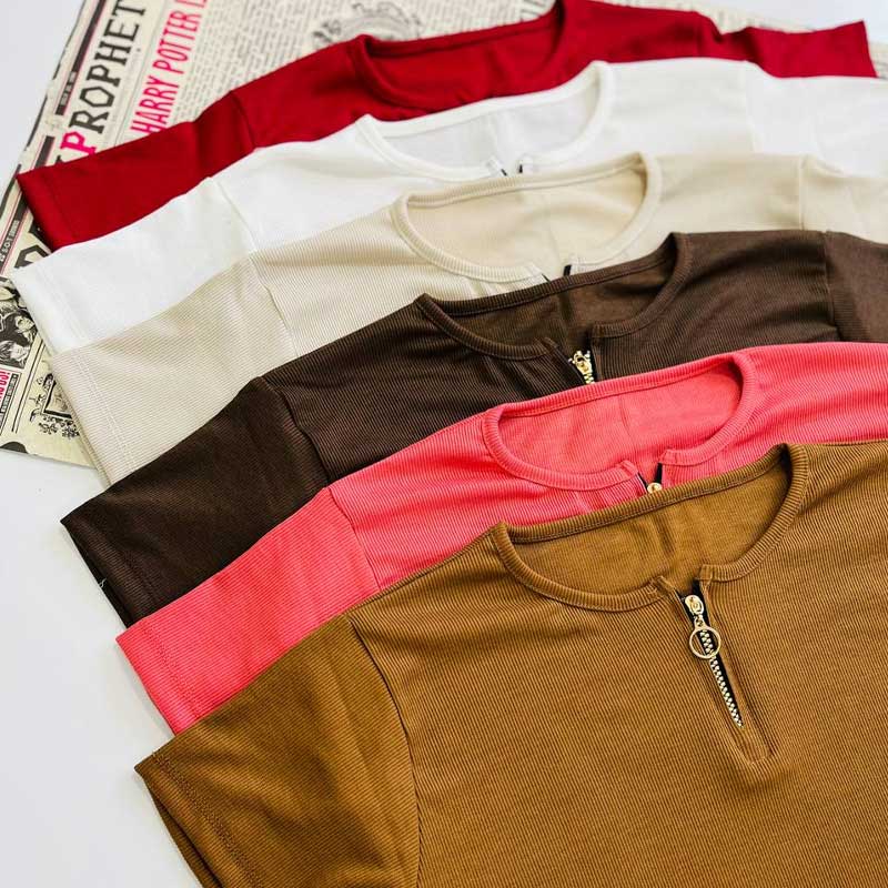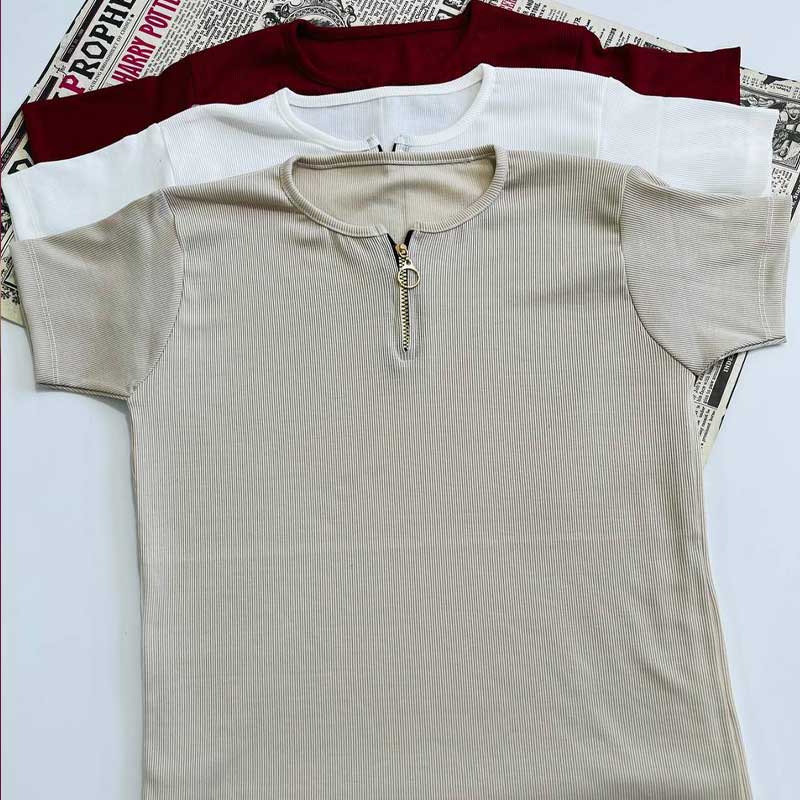 تیشرت نیم آستین(نیم زیپ ) (پک 6 عددی)