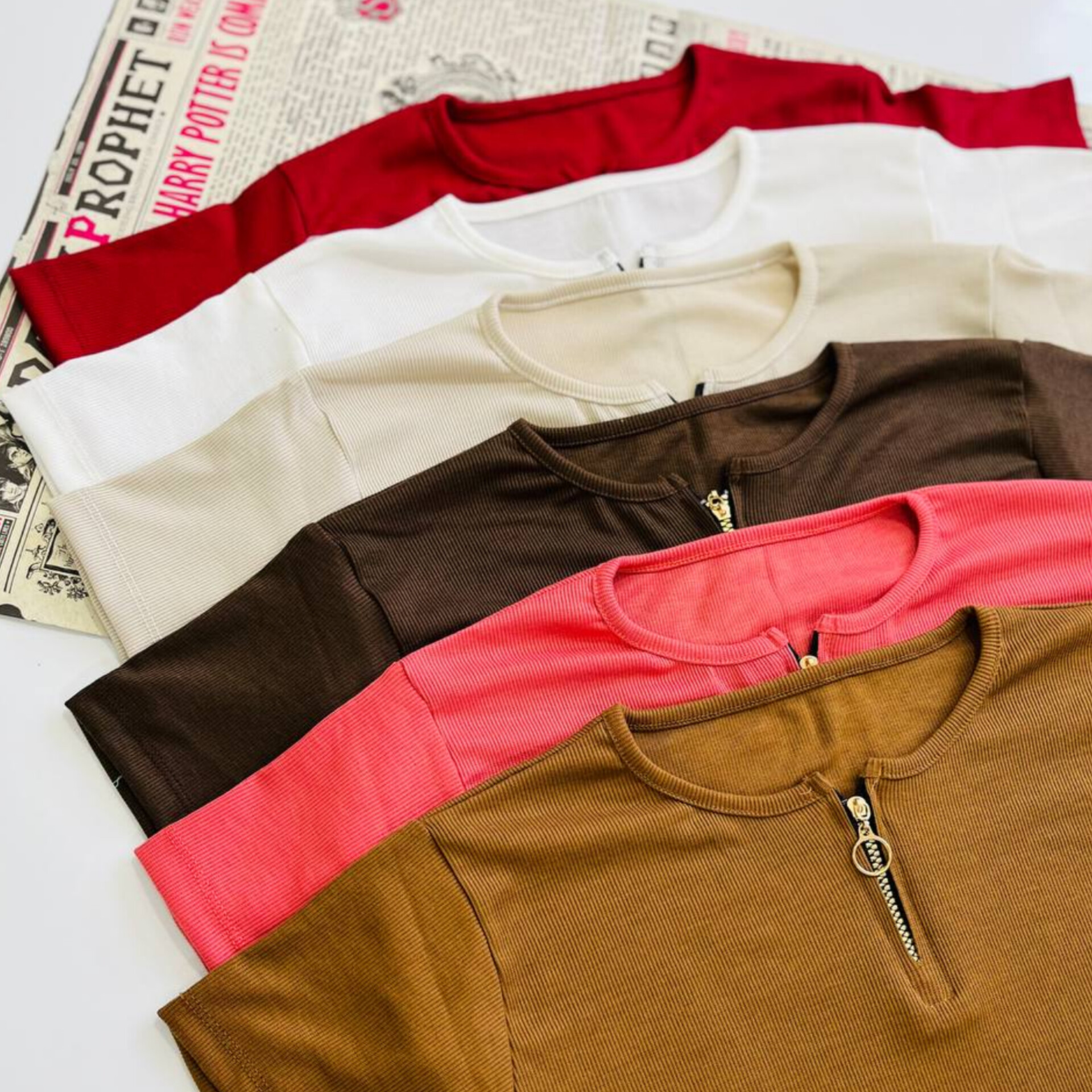 تیشرت نیم آستین نیم زیپ عمده (پک 6 عددی)️