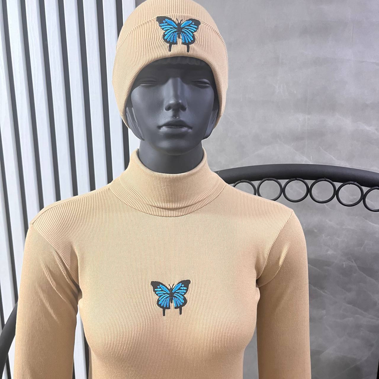 ست بادی و کلاه گلدوزی پروانه(پک 7عددی)