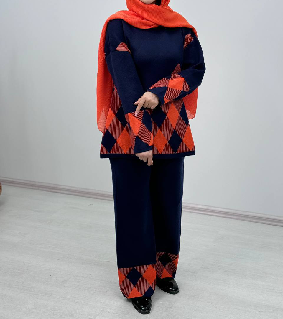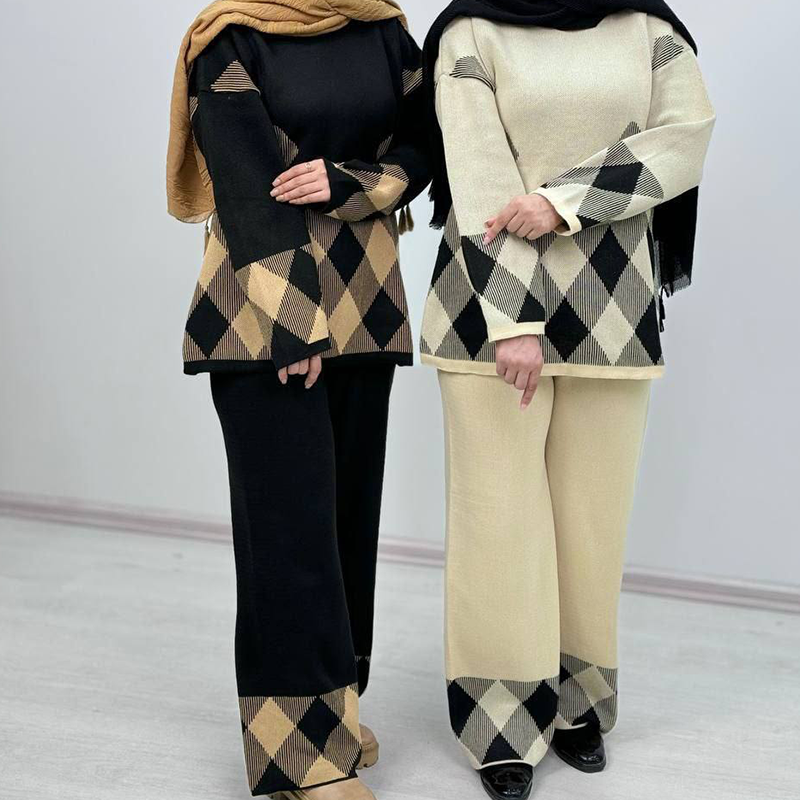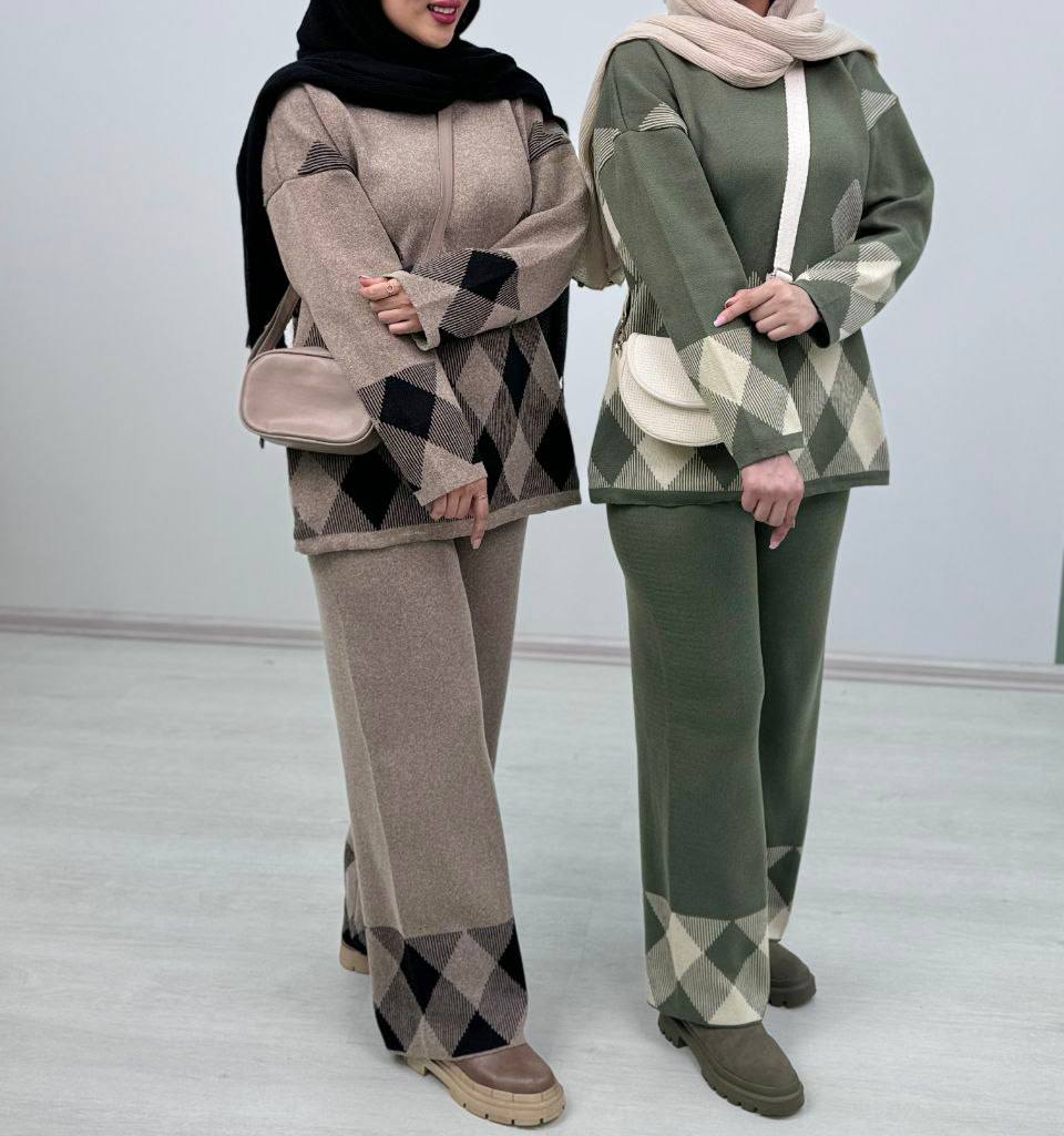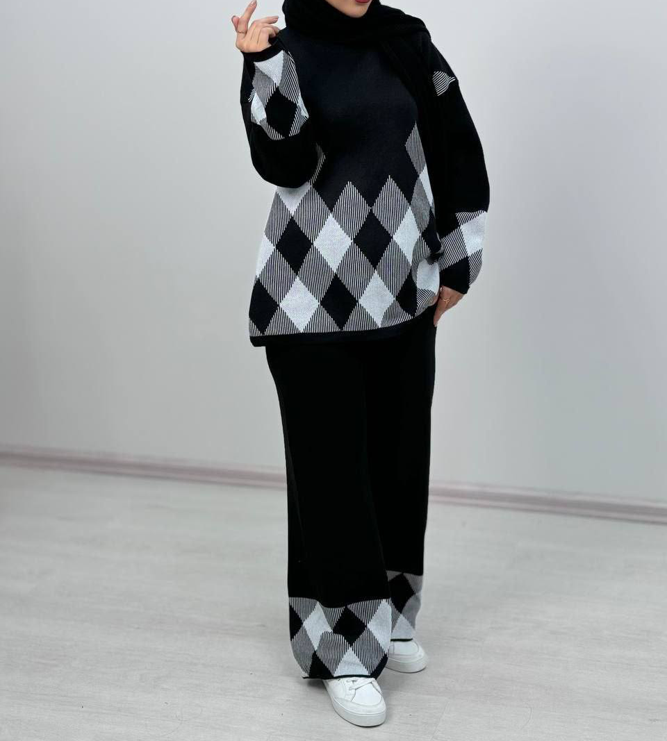 ست بافت تونیک شلوار لوزی(پک5 عددی)
