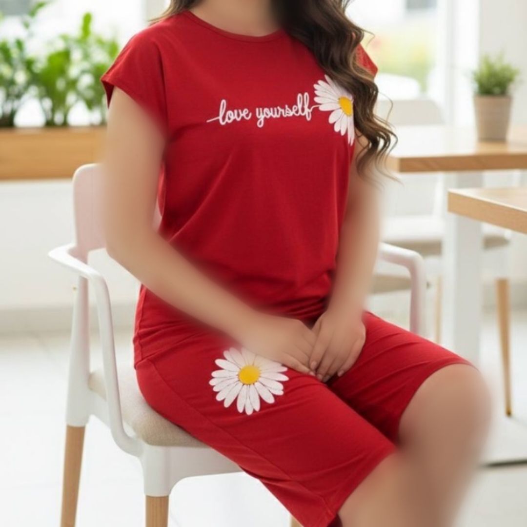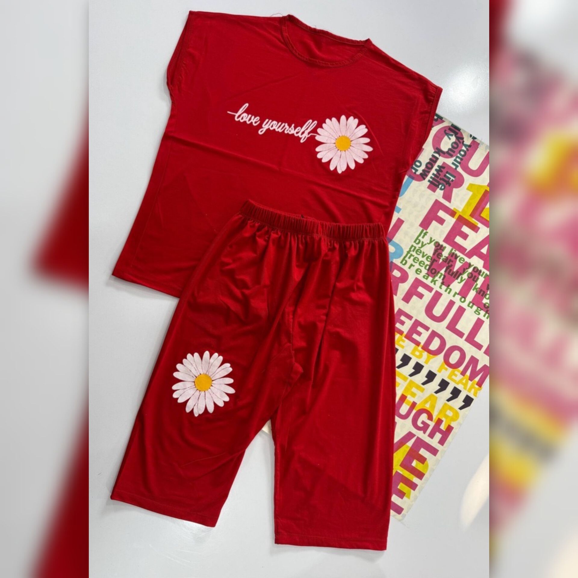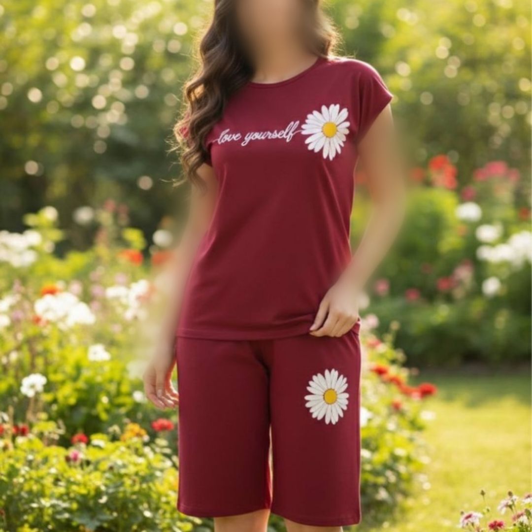 ست تاپ و شلوارک چاپ گل عمده (پک 6 عددی)