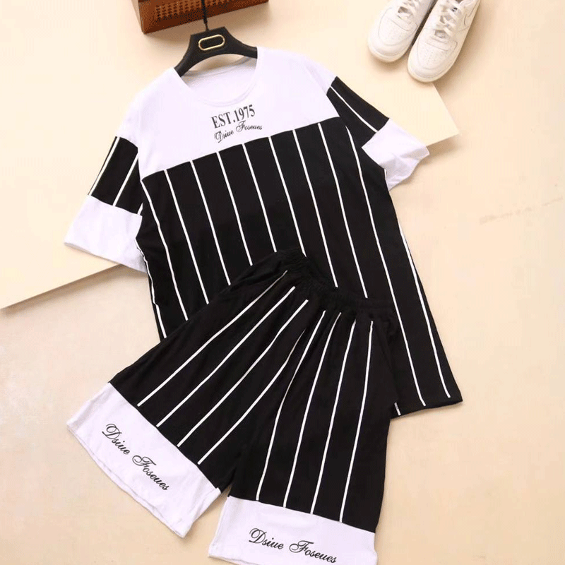ست تیشرت شلوارک لانگ راه راه (پک 3 عددی)