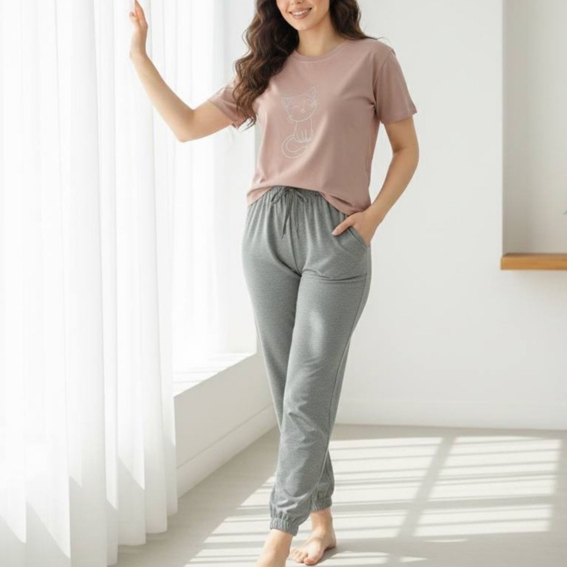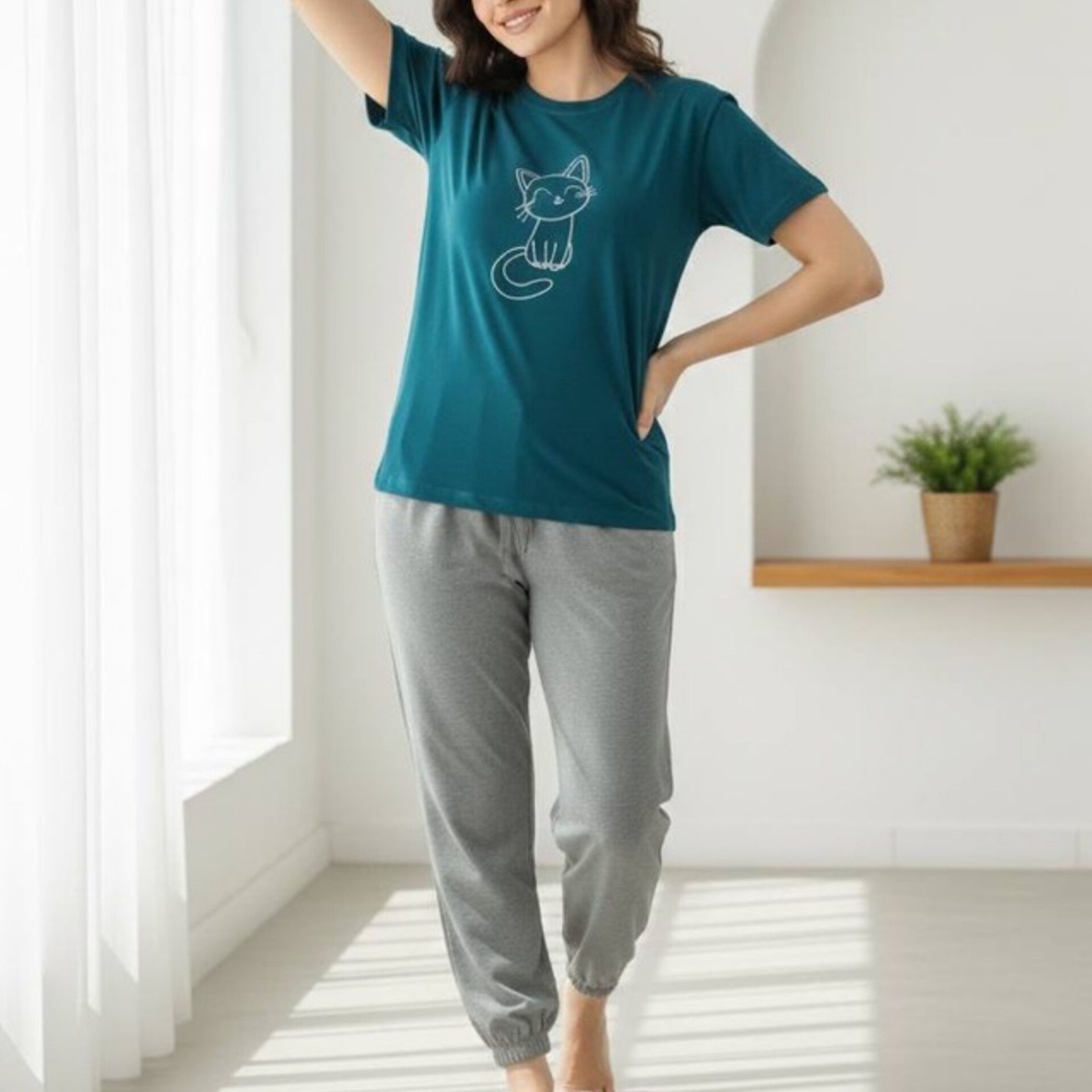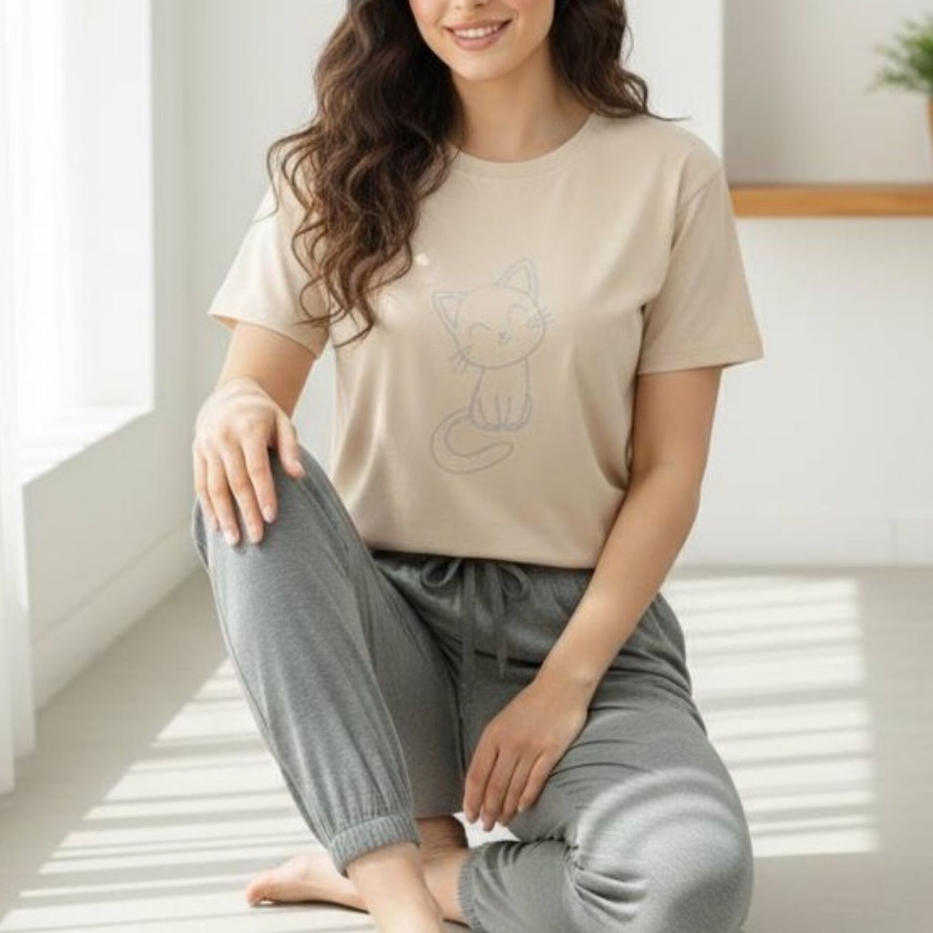 ست تیشرت شلوار چاپ گربه عمده (پک 6 عددی)
