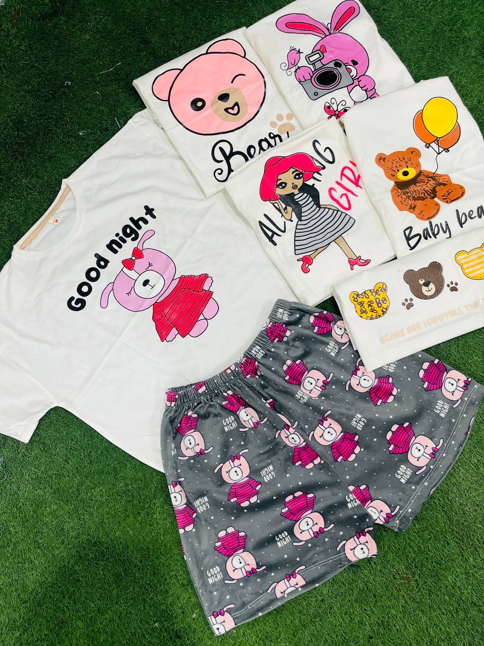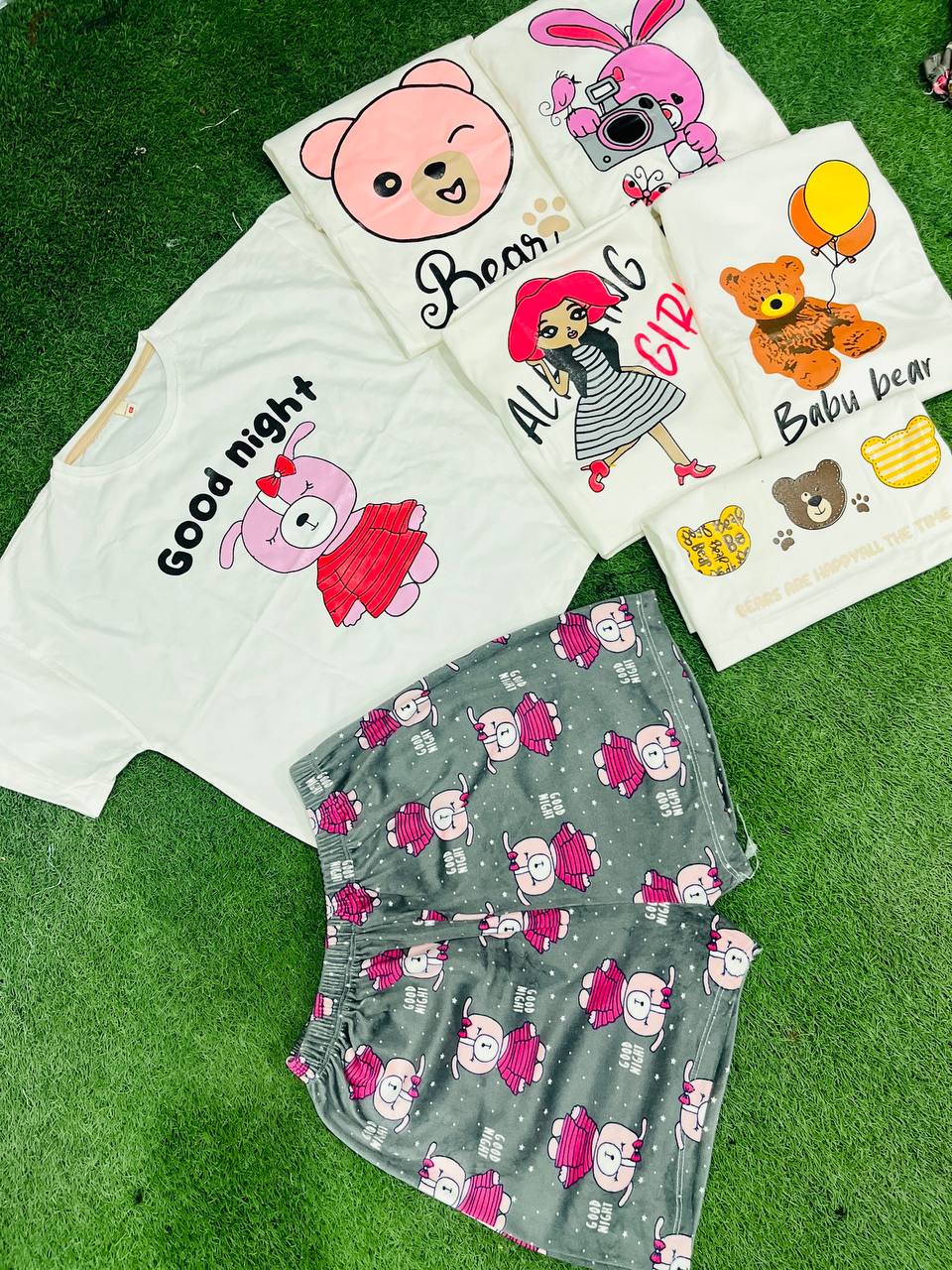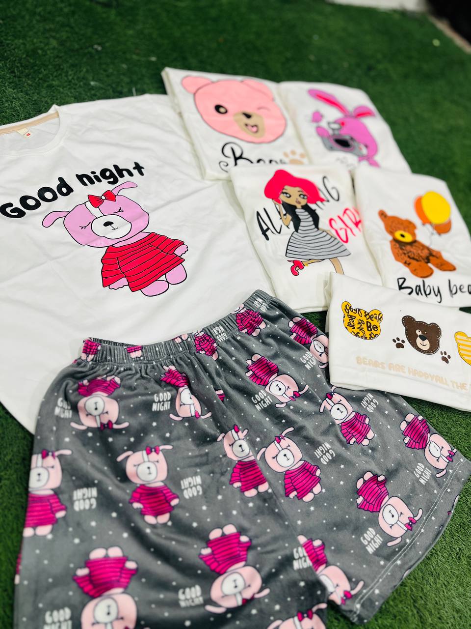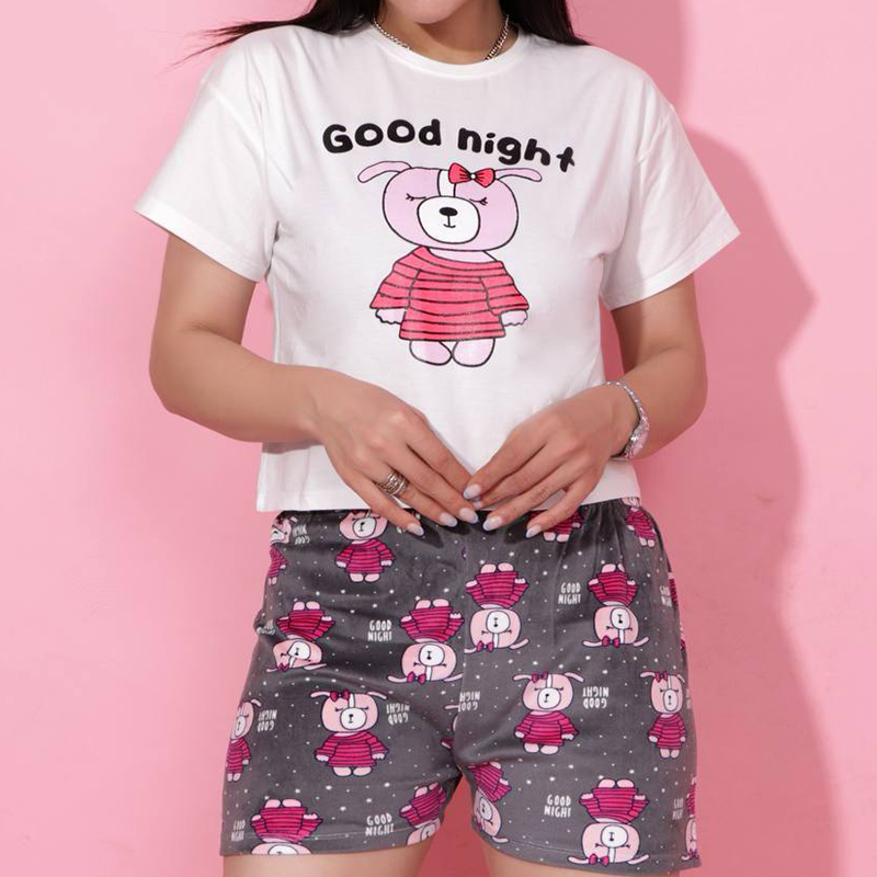 ست کراپ پنبه و شورتک مخمل (پک 6 عددی)