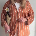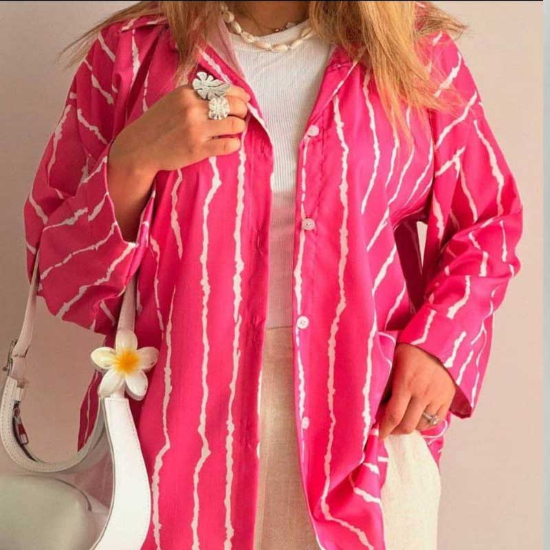 شومیز جلو دکمه پری خط درشت (پک 6 عددی)