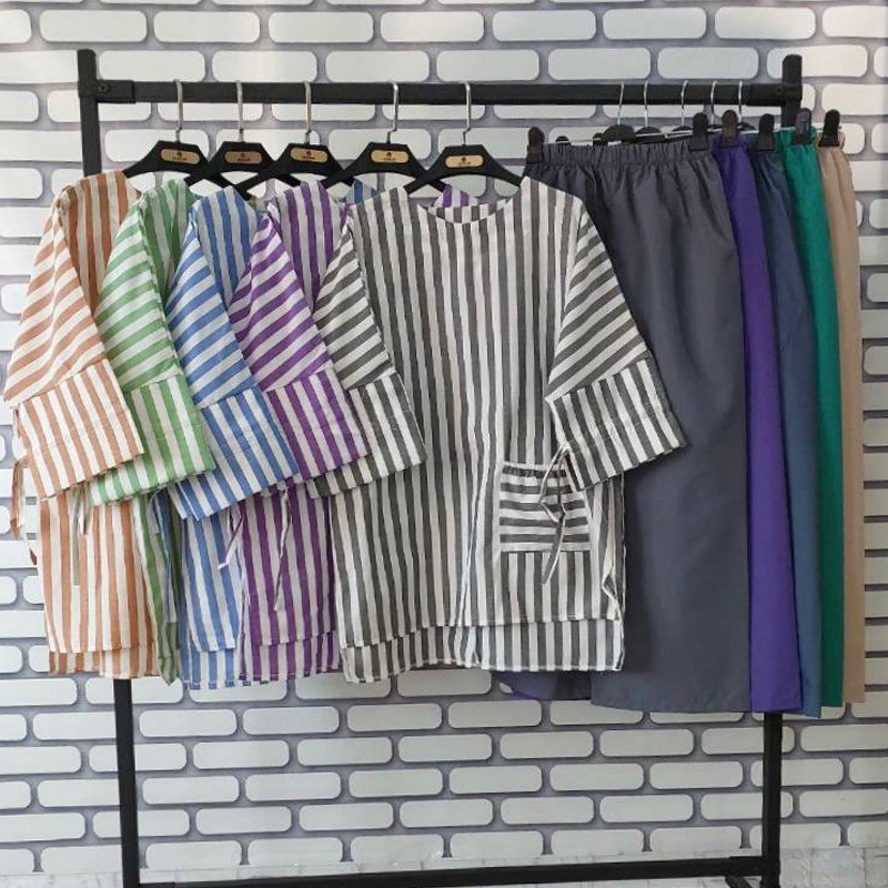 مانتو شلوار راه راه تک جیب (پک3 عددی)