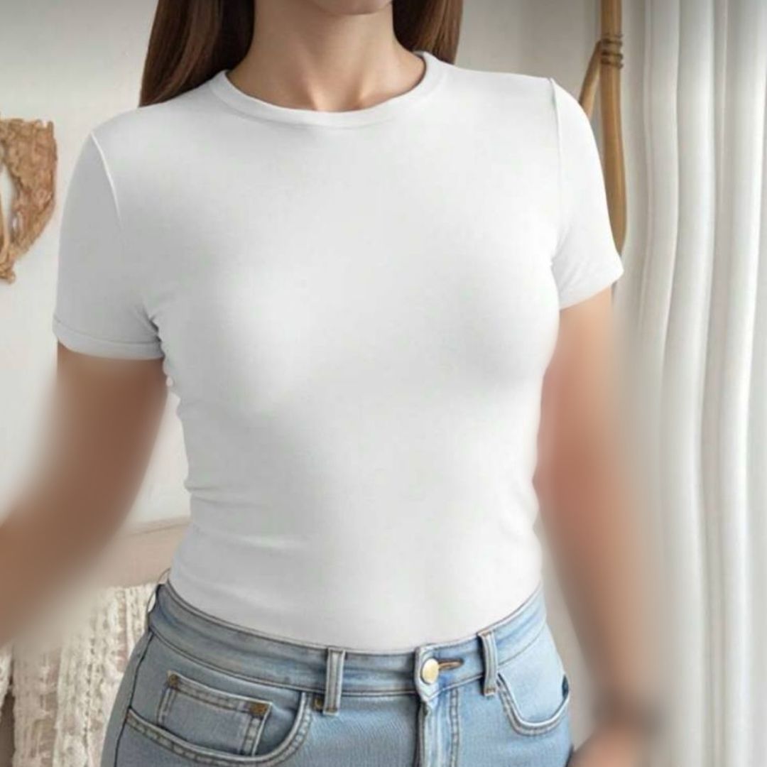 کراپ تیشرت یقیه خشتی بیسیک عمده (پک 6 عددی)