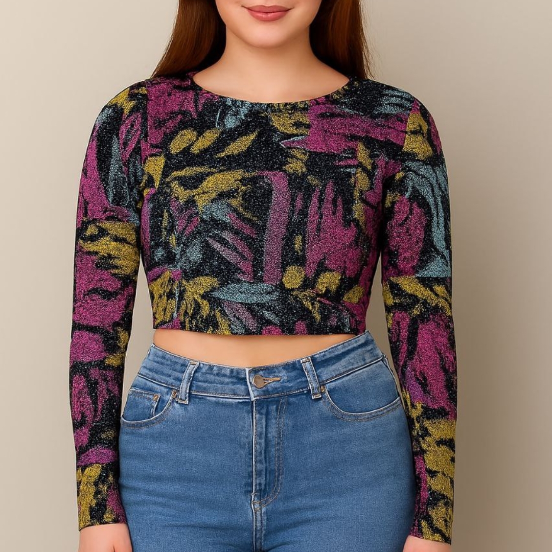 کراپ یقه گرد استین بلند عمده (پک 6 عددی)