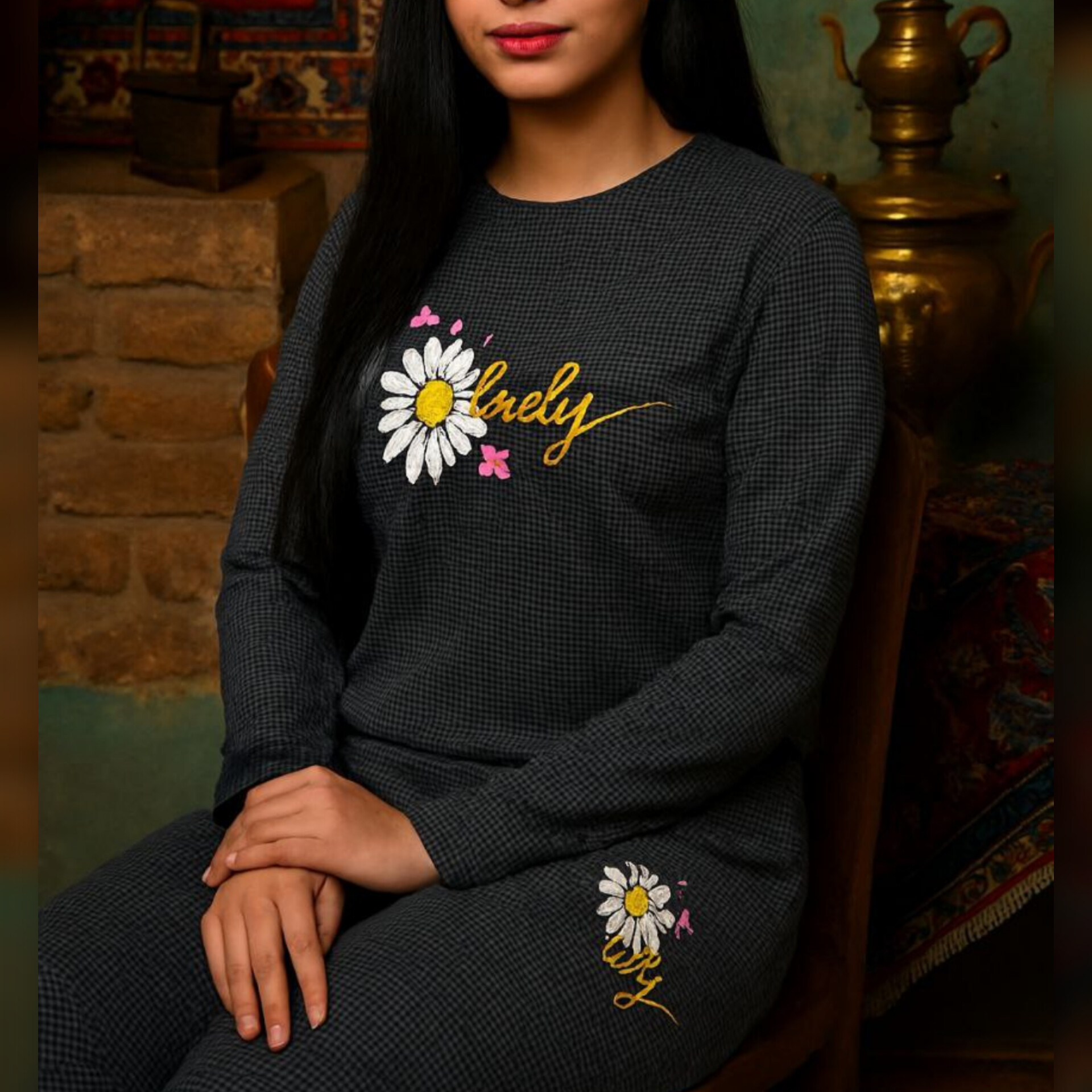 ️بلوز شلوار استین بلند چاپ دار عمده (پک 4 عددی)