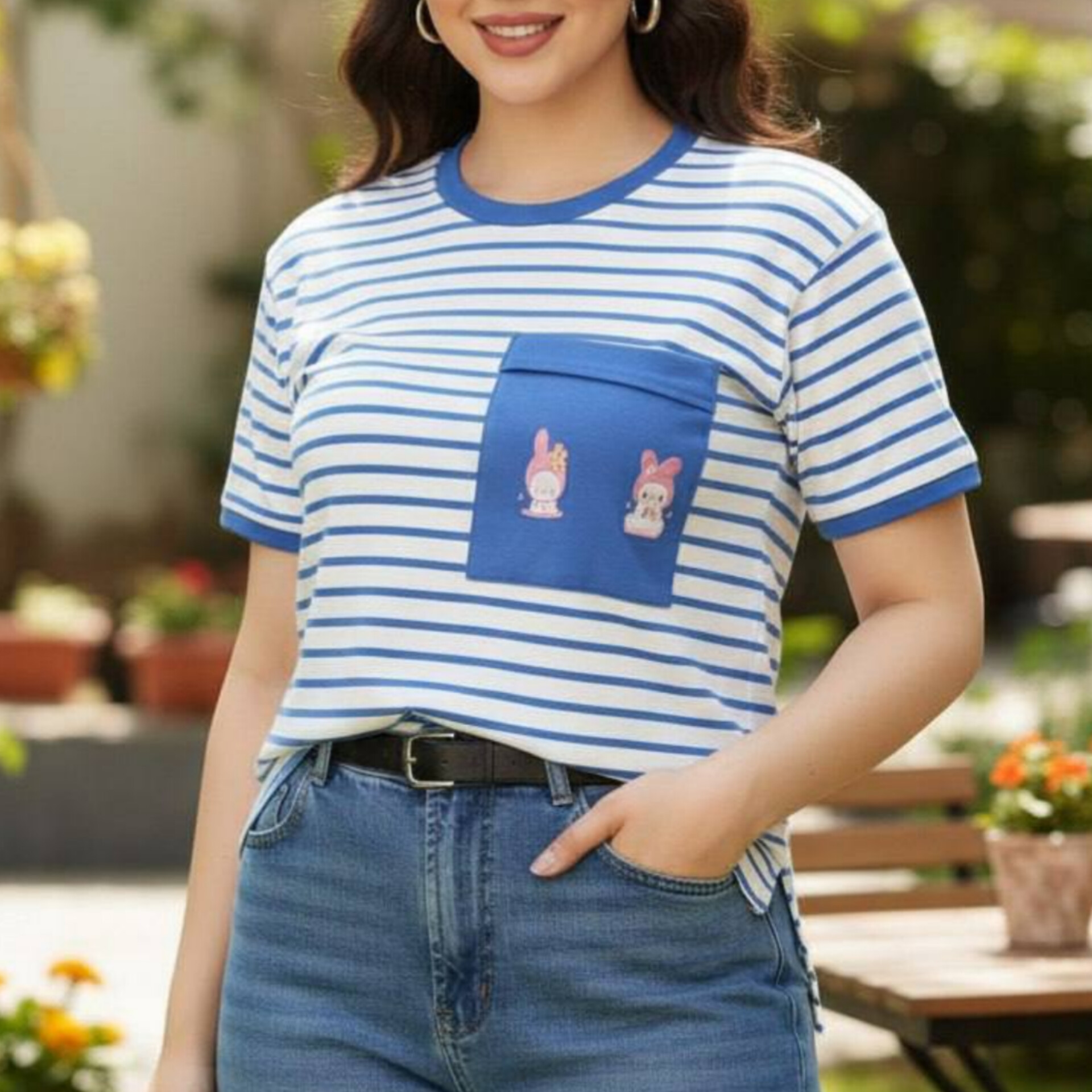 ️تیشرت راه راه کبریتی تک جیب عمده (پک 6 عددی)